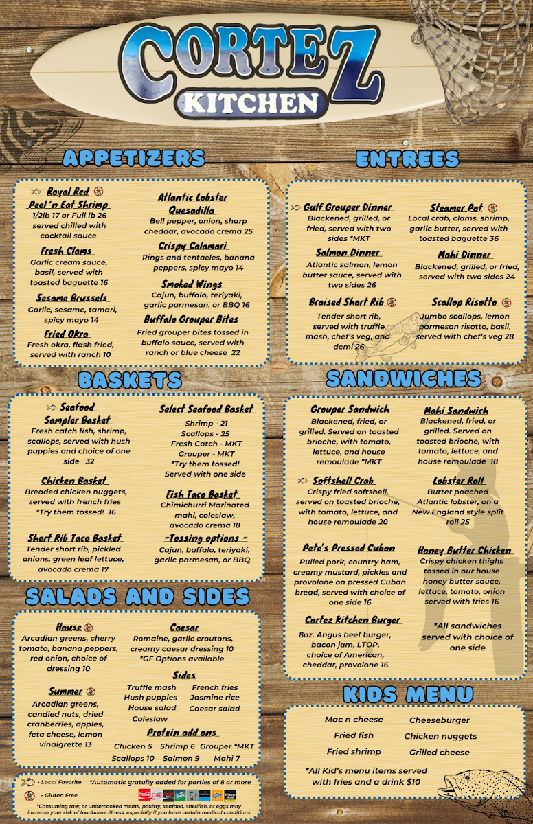 Welcome to Cortez Kitchen, a hidden gem nestled in the heart of Cortez, Florida. This charming restaurant is renowned for its authentic seafood offerings and inviting atmosphere, perfect for unwinding after a day of adventure. Guests rave about the flavorful dishes, such as the delicious grouper and mouthwatering blackened fish tacos.